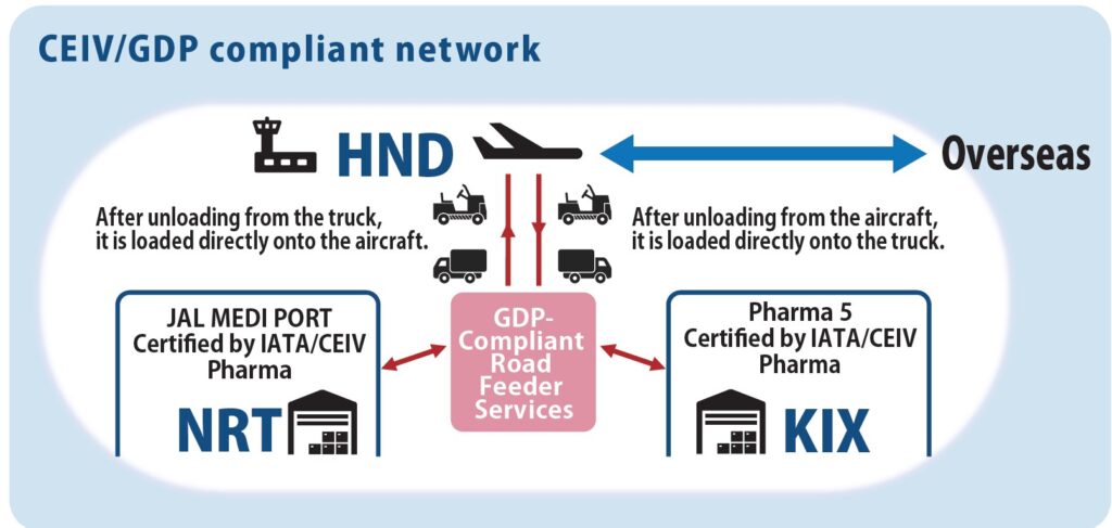 เมื่อเร็วๆ นี้ สายการบิน Japan Airlines (JAL) ได้บรรลุการขยายระยะการรับรอง Center of Excellence for Independent Validators in Pharmaceutical Logistics (CEIV Pharma) จากสมาคมการขนส่งทางอากาศระหว่างประเทศ (IATA) ณ ท่าอากาศยาน Narita ประเทศญี่ปุ่น พร้อมขยายความครอบคลุมถึงการขนส่งภาคพื้นระหว่างท่าอากาศยาน Narita, Haneda และ Kansai ถือเป็นสายการบินญี่ปุ่นรายแรกที่ได้รับรองดังกล่าวครอบคลุมการขนส่งภาคพื้น