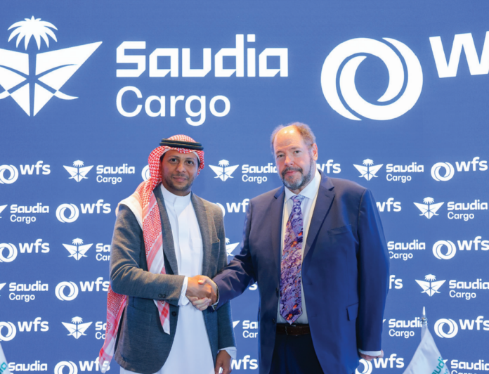 ภายในพิธีการลงนามสัญญาใน Jeddah ซาอุดิอาระเบีย Eng. Loay Mashabi ประธานเจ้าหน้าที่บริหารและกรรมการผู้จัดการ สายการบิน Saudia Cargo ได้ร่วมลงนามกับ Mr. John Batten ประธานเจ้าหน้าที่บริหาร บริษัท WFS ประจำยุโรป ตะวันออกกลาง แอฟริกา และเอเชีย (EMEAA)